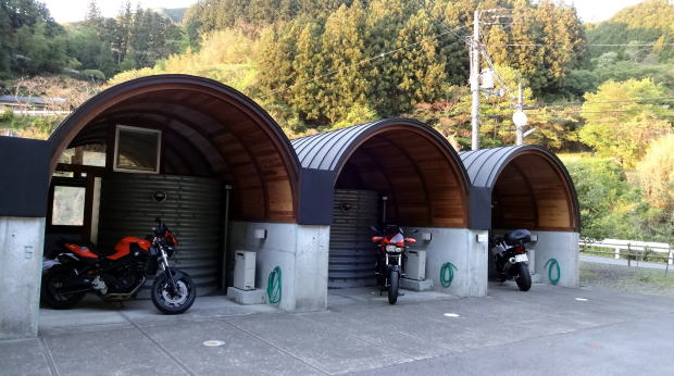 部屋の前には水道もあり洗車ができます