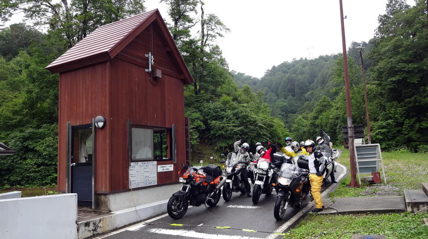 10台揃って有峰林道を走り、ダムに到着