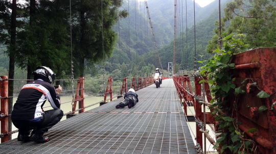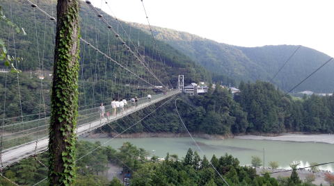 この橋は高さもあり、大揺れがクセになる吊り橋です