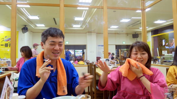 トイレ休憩が多く、予定時間より遅れましたが無事に健康ランドに到着!