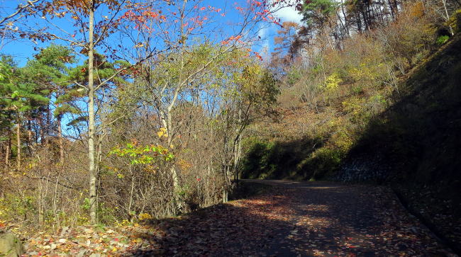 山頂近くでは落ち葉がすごく、滑りそうなのでビビりながらでのラン。