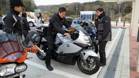 駐輪場で潤平君のK1300Sに跨らしてもらいました