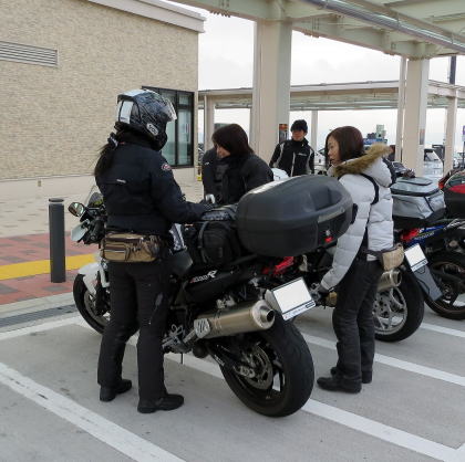 彼女はいつもグリップヒーターを使わないのに、なぜか今日は電熱グローブを着けてました
