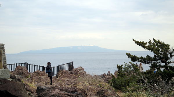 対岸に見える大島の三原山の山頂に雪が積もっているのが見れました