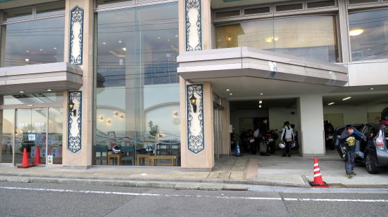 バイクはロビーの横(屋根の下)に停めれました