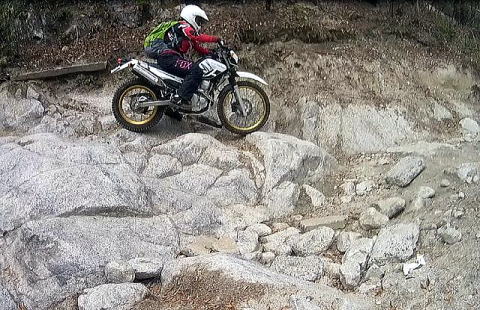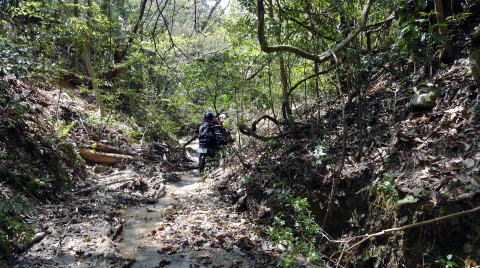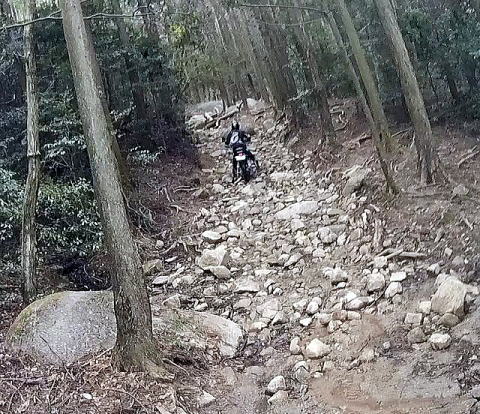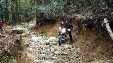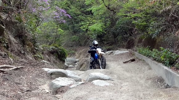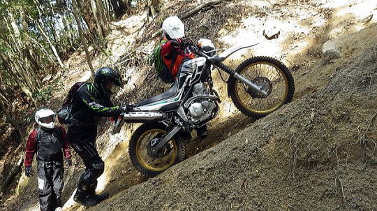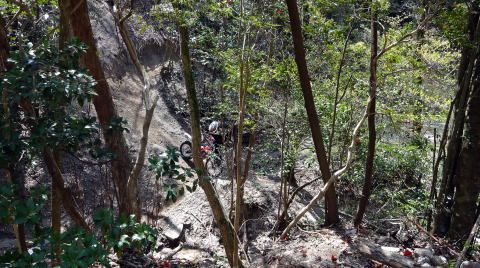 急斜面にビビリ、僕らはアタックしなかったのにセローでチャレンジした彼女に脱帽…