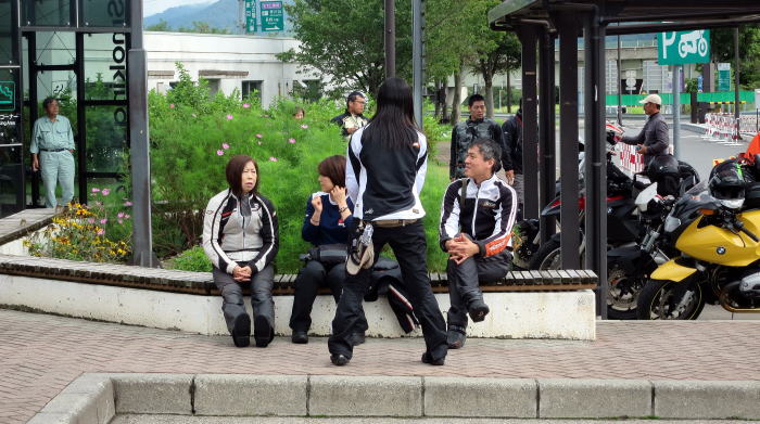 僕のバイクの上にはちゃっかりと、みんなのジャケットやヘルメットが置かれてます
