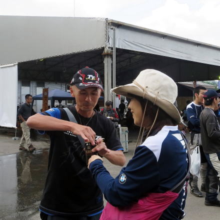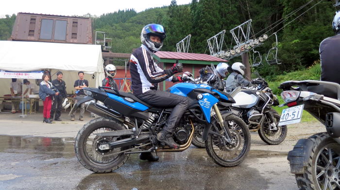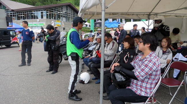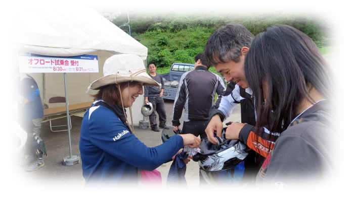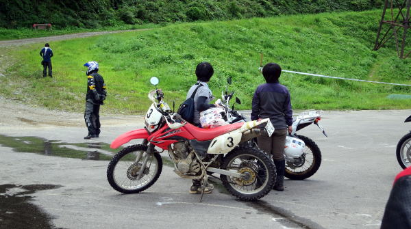 僕らは見学だけですが会場に行ってみた所、自分のバイクを持ち込んで林道を走ろうとしている女子ライダーが2名…