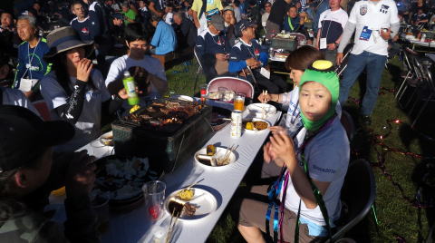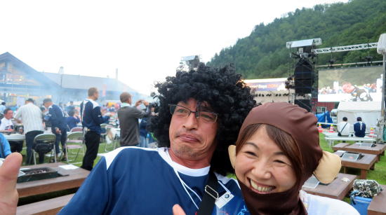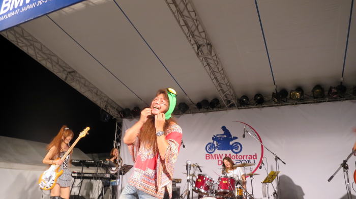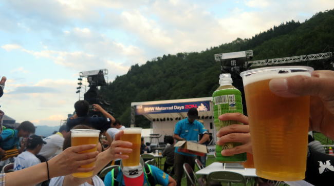 彼は今回バイクではないので、ビールを飲みながらイベントを楽しんでるようです