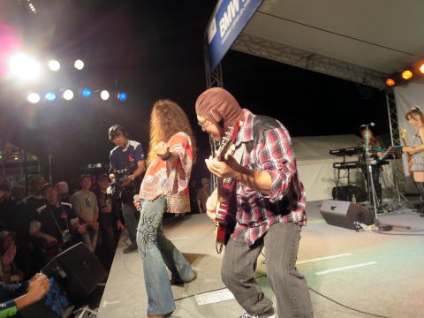 ステージで始まったライブのギタリストにも被ってもらいます