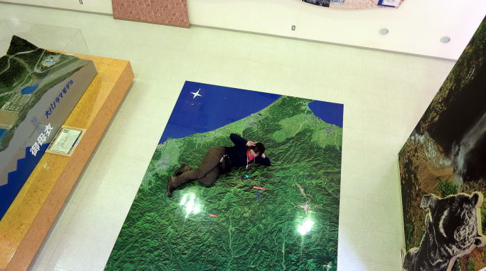 ダム電力館内で寝っ転がったり