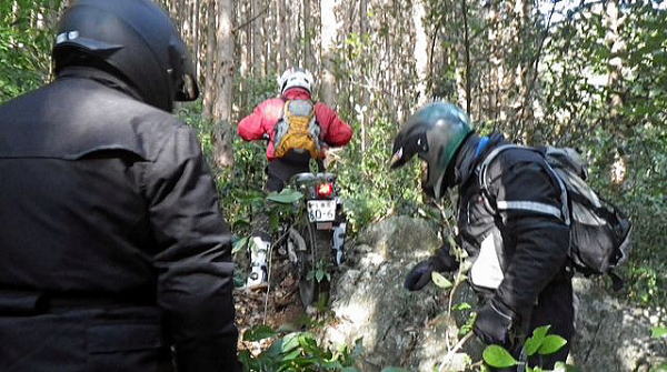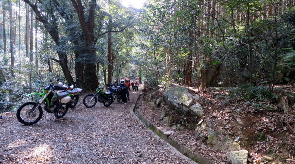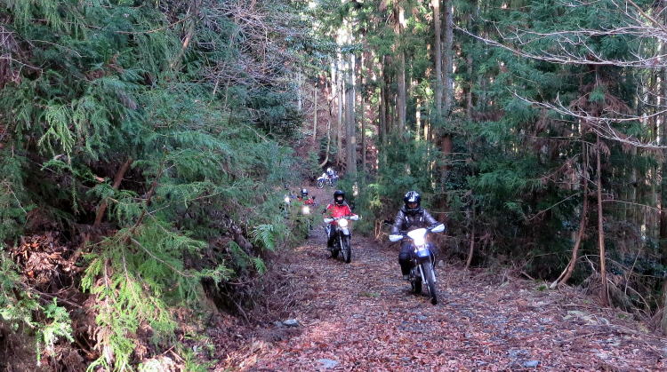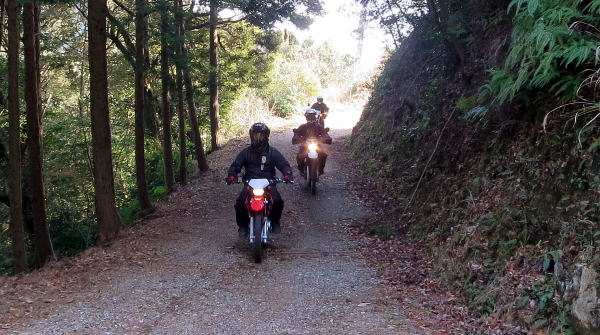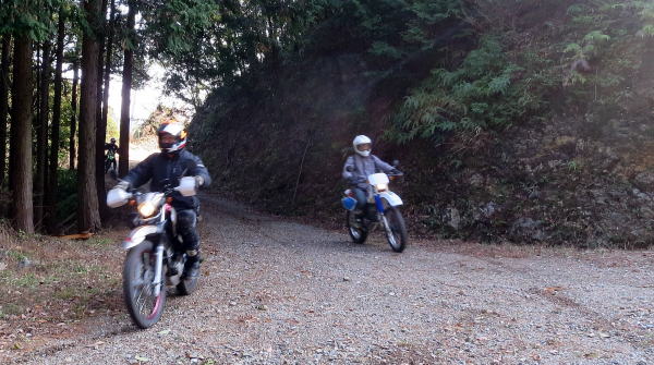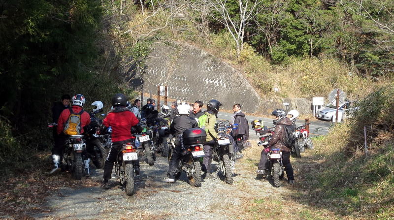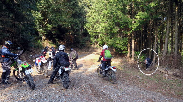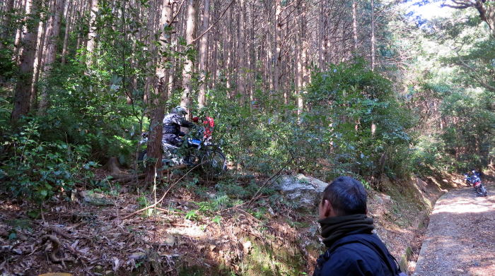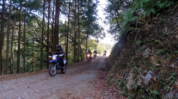 一本目の林道を全員無事に走りきり、出口でワイワイと雑談タイム