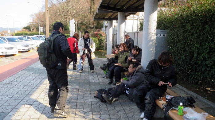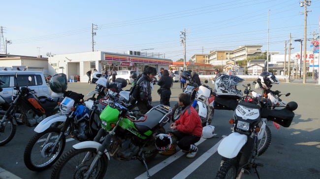 集合場所のコンビニに続々とオフローダーが集まってきます