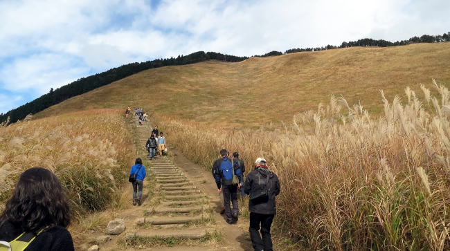 登り始めは余裕でしたが、だんだんと急坂になり…