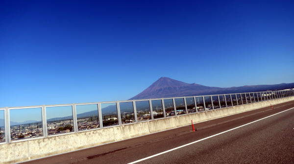 清水を過ぎたあたりからは、雲ひとつない青空の中の富士山を見ることができました