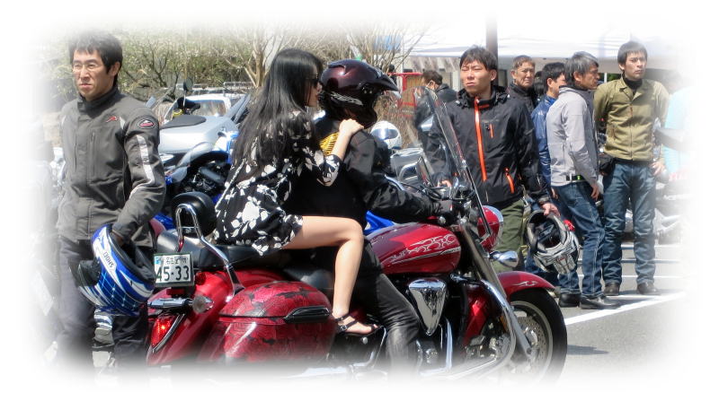 彼女は外国の方で、撮影のためにリヤシートにミニスカのまま跨ってました
