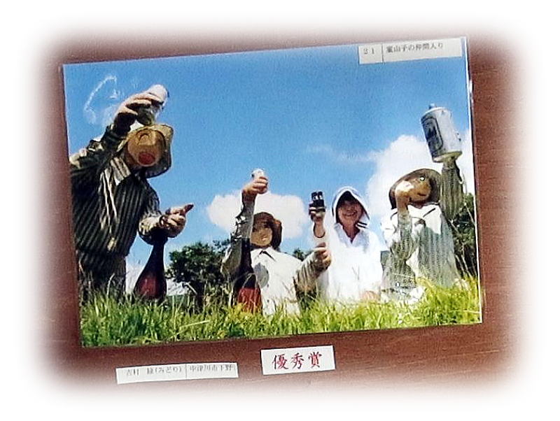 ぱんうささんは、真ん中のおばちゃんみたいに案山子に囲まれて乾杯ポーズを撮りたいと言ってました
