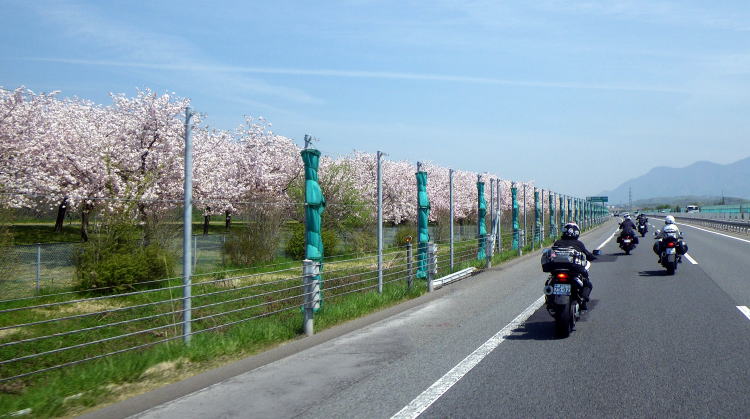 上信越道の長野市を過ぎた所では、千曲川沿いの桜並木を見る事ができました