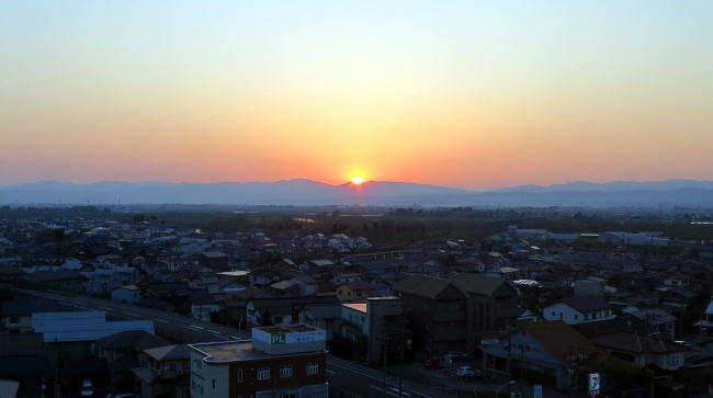 ホテルの窓からタイミングよく、羽黒山麓からの日の出を見る事ができました