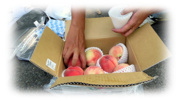 ラークさんはここに来る前に、ラッキー?なことに桃をお買い上げしてました。