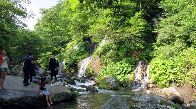 清里の駅の近くの滝ですが、有名どころみたいで混雑してます