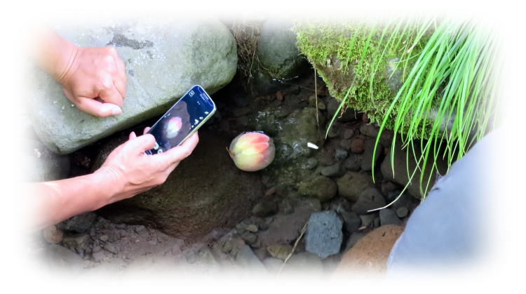 川で冷やしてる桃を、エロ画像風に撮影しちゃいます