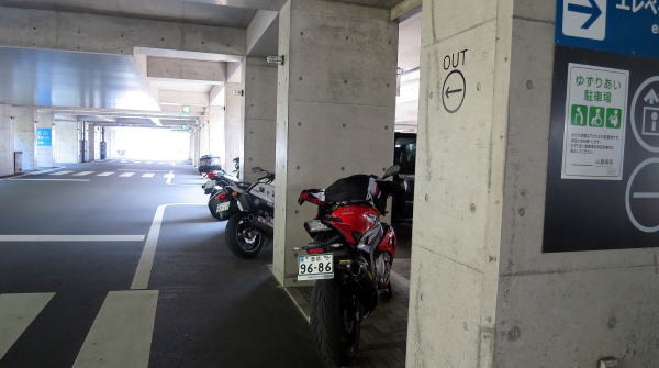 バイクは屋根の下に駐輪でき、雨天時や真夏にはありがたい駐輪場です