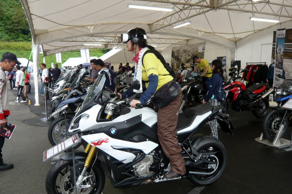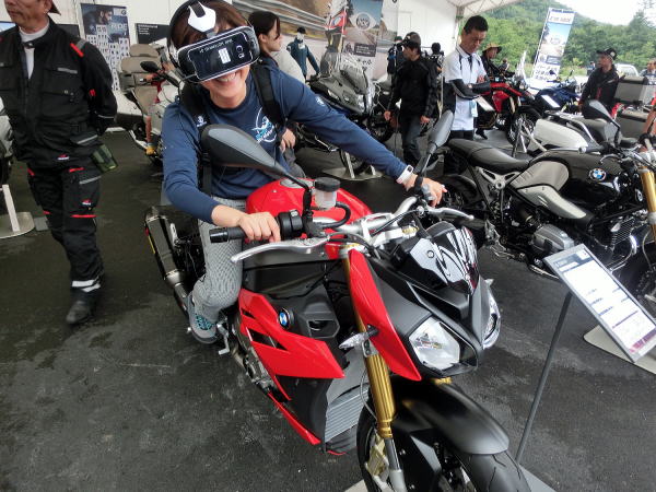 彼女はS1000Rに跨り、レースモード体験
