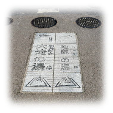 草津温泉街の道路には、迷わないように案内板が設置されてました