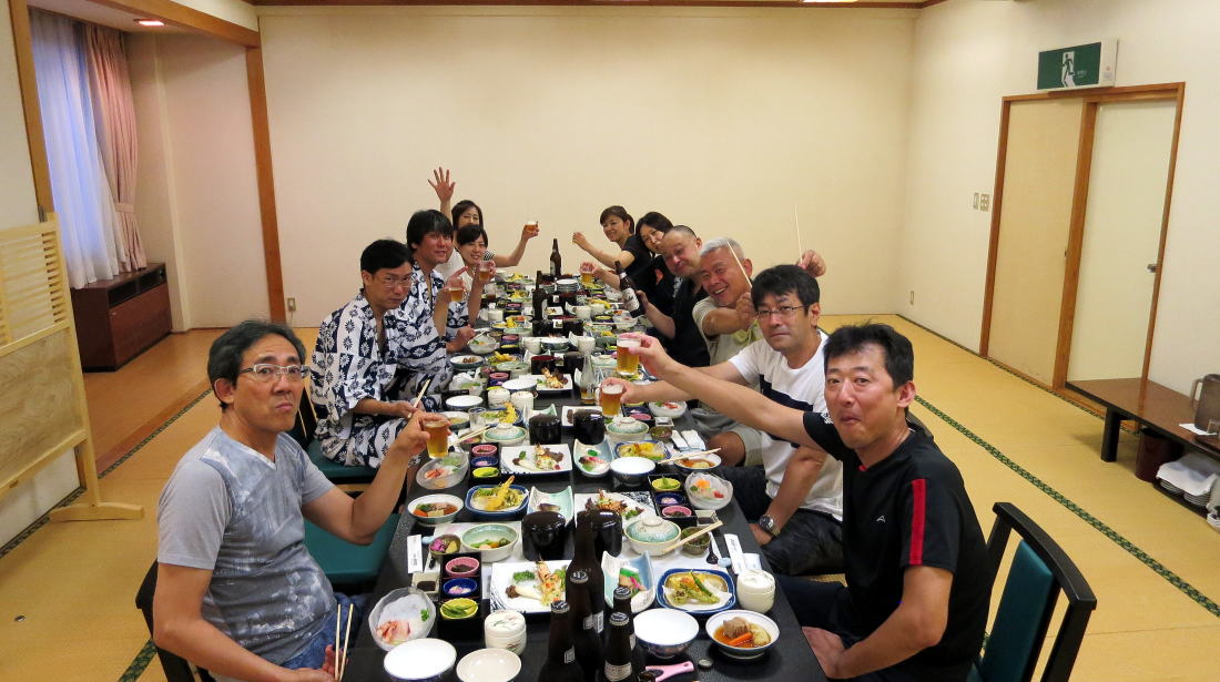 ホテルの内湯で汗を流し、早々と乾杯しちゃう方もいました