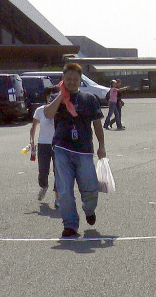 運良く料金所で彼らは、もたついていたので追いつきました。せっかくですから出発を待ち、隣の車線から見送りです。