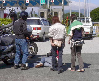 お土産屋さんをうろつく ライダー