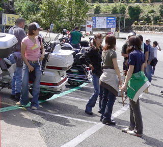 駐車場で密談(?)する、女性チーム