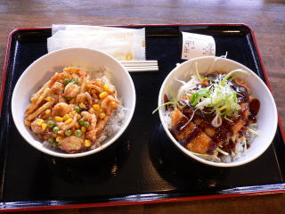 かき揚げ丼と味噌カツ丼でしたが、味は普通でした。値段が安かったのでまあ、納得しました。