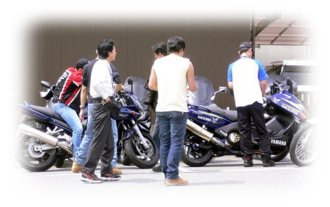 途中で合流できなかったなかちゃんとryu-chanも無事に到着しました。彼らは夫婦仲良くタンデムでした。また、ryu-chanの会社の同僚君も一緒に来ていました。