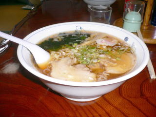 このお店は人気店みたいで満席状態でした。あっさりしょうゆベースのスープに細めのちじれ麺です。喜多方ラーメンとは違い、麺のモチモチ感がなく私としてはこちらの麺の方が食べやすかったです。高梨さんはスープまで飲み干していましたが、彼はかなりのラーメン好きなんでしょうね。