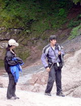 滝の所で、何かたくらんでいるbunさんと心配そうなたかこちゃん