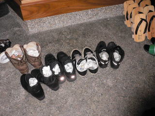 朝食を済ませ出発ですが、玄関には前日の雨で濡れていた靴の中に新聞紙が入れられていました。こんな所にもきずかいされていて感心しました。なかなか気持ちの良い宿でした。
