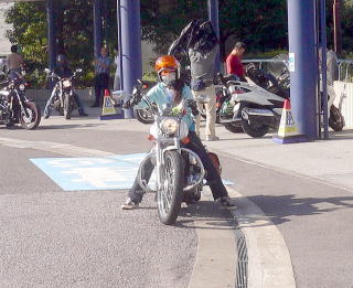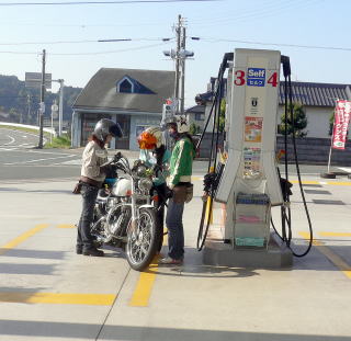高速道路を走り出してしばらくしたら、突然女房から停まれとのサインです。急遽みんなと離脱しSAに立ち寄りました。苦痛のタンデムランの限界な様子でした。ここで運転の交代です。僕も初めて883の後に乗りましたが、ちっちゃなリヤシートで油断していると後にずり落ちそうです。ショートサスのせいか乗りごごちも最悪でした。もう二度と883でのタンデムはしたくないです。