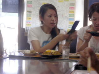 初対面の焼そばを携帯で撮る、うりちゃん&のいこちゃんです☆