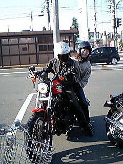 集合時間も迫ってきたので女房とタンデムで行く事し、今度は883のシート交換です。ハーレーでタンデムしたのは今回が初めてで、第一集合場所までちょこっと走っただけで女房は苦痛(?)で文句タラタラでした。