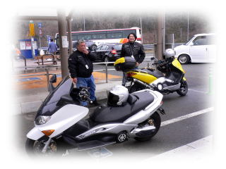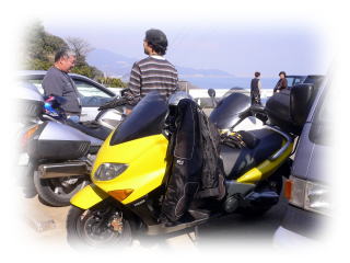 Rockzさんは今回、駿河には車での移動でした。バイクでの参加者がいないかと探していた所おやじんがパンでの参戦を確認しました。どうやら虎三さんもTMAXで来るみたいでした。彼らとむめさんでの合流も考えましたが、そこからでは一緒に走れる距離が少ないので藤野PAまで行っちゃう事にしました。