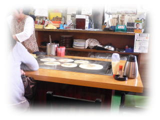 11時なのにすでに沢山のお客さんがいました。おばちゃんが目の前の鉄板で焼いてくれるスタイルのお店です。