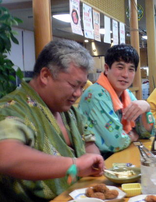 入浴後、宴会スタート時間まで待ちきれず早々と虎三さんと軽く飲んじゃいました