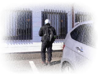華やかな女性ライダーと怪しげなライダー