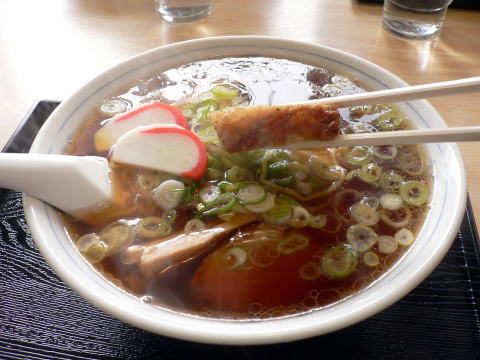 「あきん亭らーめん」の特徴は、大きなチャーシューです。「八百善らーめん」ほど大きくはありませんが、ほど良く切られた大きさのチャーシューが5切れ。こだわりの特上かまぼこ。あっさりめのしょうゆスープで飽きない味です。
