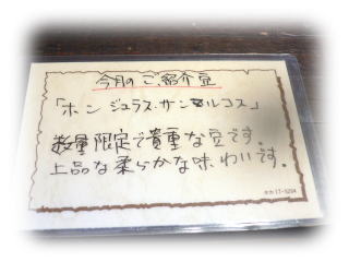 ここでは「本日のコーヒー」を頂きました。始めて聞く豆の名前で、舌を噛みそうなネーミングです。お店は忙しそうで、残念ながらちっちさんとはお話し出来ませんでした。