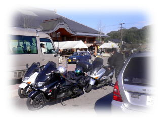 健康ランドに無事に到着です。駐輪場はこのようにいろんなバイクで一杯なのでしかたなく立体駐車場の二階にバイクを停めました。