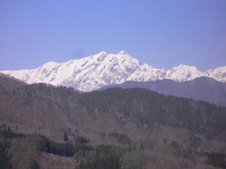 峠を下り始めた所で綺麗な白馬連峰を見る事ができました