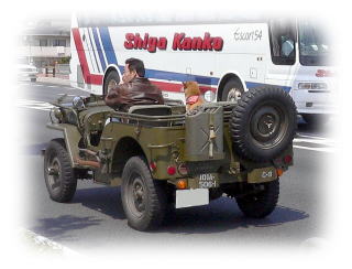 (バイク集団に吠えまくる、スタンドのわんこ)